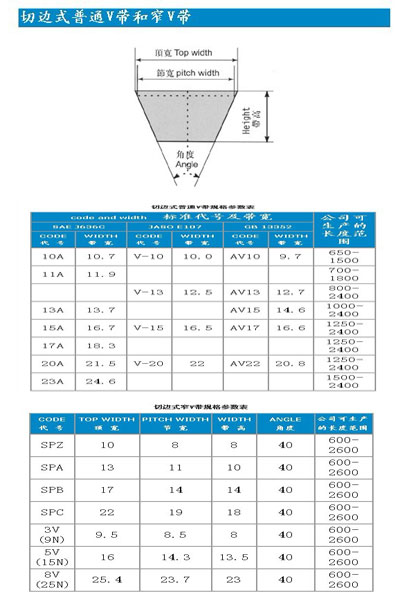切邊式V帶可分為普通V帶和窄V帶其具體參數(shù)請點擊'參數(shù)表':